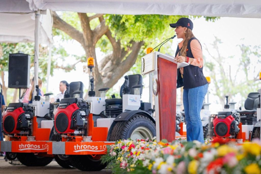 En este acto, la mandataria entregó cuatro camionetas de doble tracción para la Secretaría de Obras Públicas, Desarrollo Urbano y Ordenamiento Territorial; dos camionetas 4×4 para la Capaseg; dos camionetas 4×4 para Cicaeg; dos camionetas para Igife; una camioneta 4×4 para Sagadegro; 5 camionetas doble rodada de 3.5 toneladas y 2 camionetas 4×4 para Servicios Generales; un recolector de basura con capacidad de cuatro toneladas a la Promotora y Administradora de Playas, además de equipo y dos unidades de emergencia equipadas para los salvavidas.
