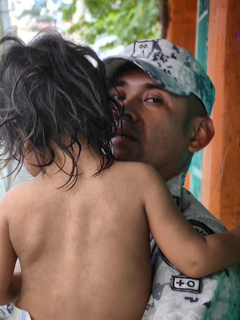 De inmediato el oficial al mando, el comandante Cordero instruyó a su personal para realizar el rescate del menor y uno de ellos lo ayudó a ponerse a salvo, a la vez que lo hidrato.