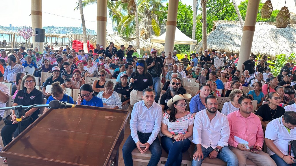 El escenario fue un restaurante ubicado sobre la costera Miguel Alemán, que se tapizó de playeras negras portadas por el grupo “Pargo”, encargado de apoyar en la logística del acto de rendición de cuentas.