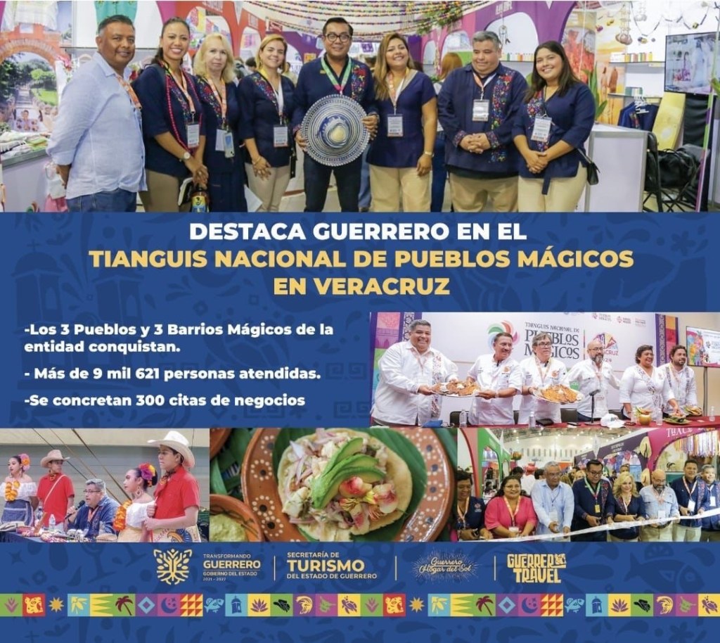 Boca del Río, Veracruz, 13 de septiembre de 2024.- Con más de nueve mil personas atendidas y alrededor de 300 citas de negocios alcanzadas, el gobierno de Guerrero que encabeza Evelyn Salgado Pineda concluyó la participación de sus tres pueblos y tres barrios mágicos en la Sexta Edición del Tianguis de Pueblos Mágicos, que se llevó a cabo del 9 al 12 de septiembre en Veracruz.