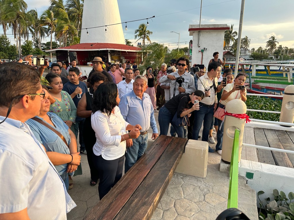 “Gracias a la visión de nuestra presidenta, hoy podemos ver este muelle reconstruido, después de estar completamente deteriorado”, expresó Mejía Cienfuegos, destacando el impacto positivo de la obra para la zona.