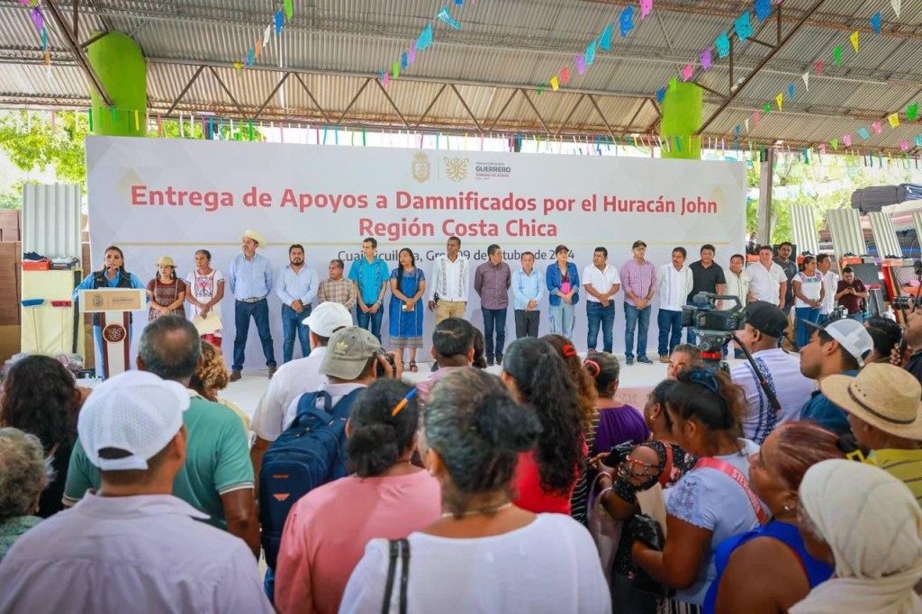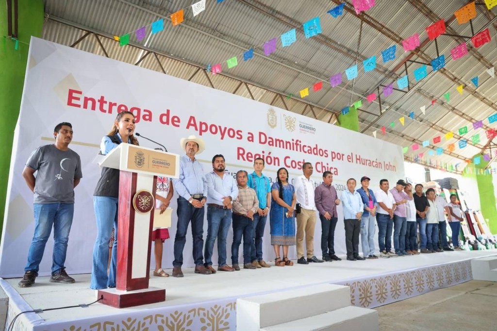 En compañía del titular de la Secretaría de Planeación y Desarrollo Regional (Seplader), René Vargas y la presidenta del DIF Guerrero, Liz Salgado Pineda, la gobernadora refrendó su respaldo a los habitantes de la Costa Chica y les reiteró su voluntad para continuar ayudando en todo lo que se requiera, a la vez que hizo entrega directa de paquetes integrales con láminas galvanizadas, productos de limpieza y aseo personal, apoyo alimentario, colchonetas, cobertores, ropa y zapatos, para familias damnificadas por el huracán John