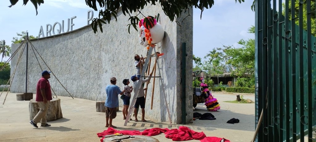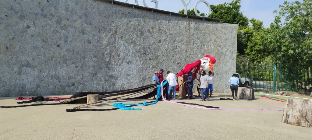 Actividades culturales como estas se han venido desarrollando en este centro recreativo y el director del Parque Papagayo, Abel Luvio Villanueva explicó que entre los materiales ocupados están telas, palos de bambú, hilos, alambre y otros implementos que son parte de lo que quedó de eventos pasados, salvo que se compraron algunos productos de bajo costo y las flores de cempasúchil. Luvio Villanueva resaltó el apoyo de los arrendatarios del parque que apoyaron para la elaboración de la Catrina gigante.