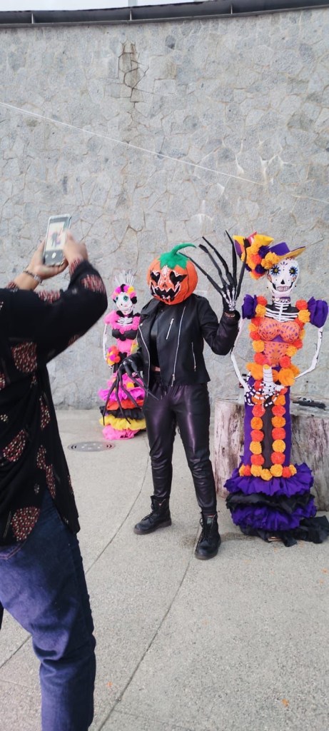 Desde la noche del jueves que se colocó la Catrina gigante en la explanada del Parque Papagayo, cientos de personas, familias, niños, jóvenes, algunos con trajes personificados se tomaron fotos y selfies de recuerdo.