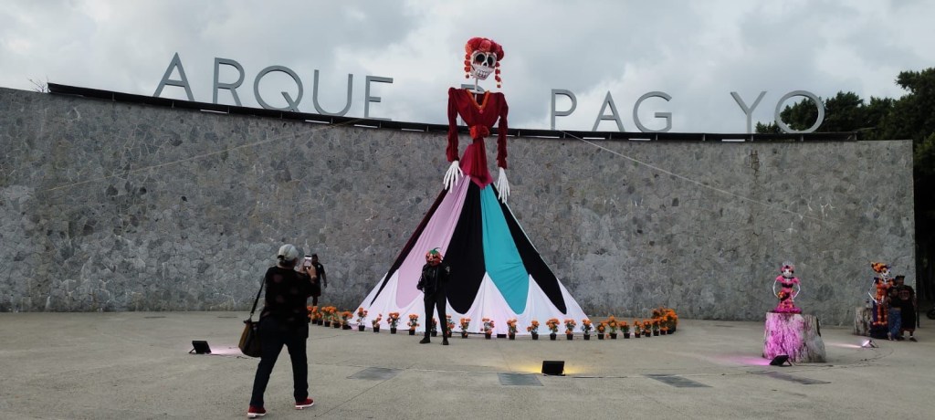 Gracias al apoyo de la gobernadora Evelyn Salgado Pineda y a su interés en el fomento y preservación de nuestras raíces y tradiciones, se pudo colocar esta gigante e impresionante Catrina que mide poco más de 8 metros de altura y más de 6 de circunferencia.
