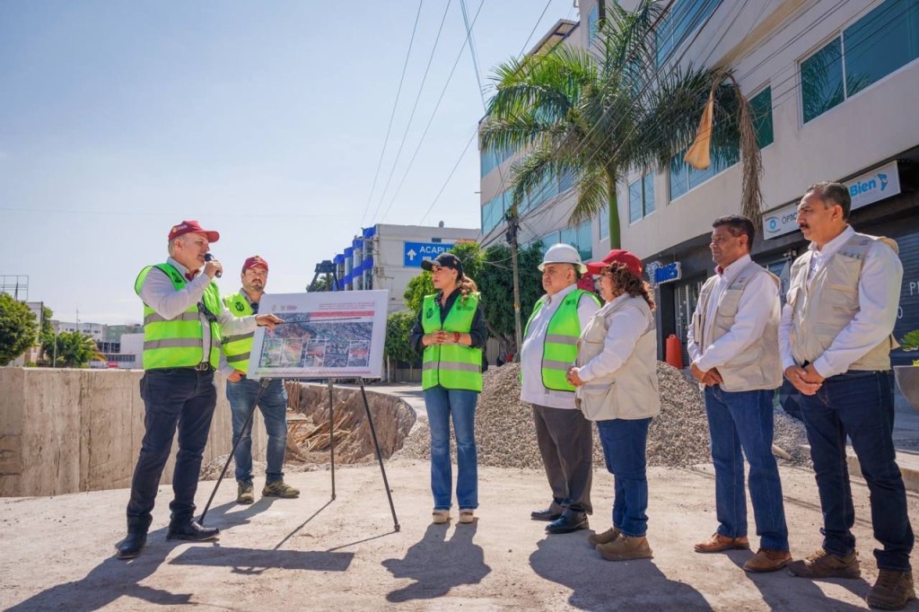 Durante este recorrido frente a la Torre Médica a un costado de una tienda departamental, ante vecinos y comerciantes, la gobernadora Evelyn Salgado Pineda reafirmó su compromiso de seguir invirtiendo en la rehabilitación total para rehabilitar la vialidad en encauzamiento del Río Huacapa.