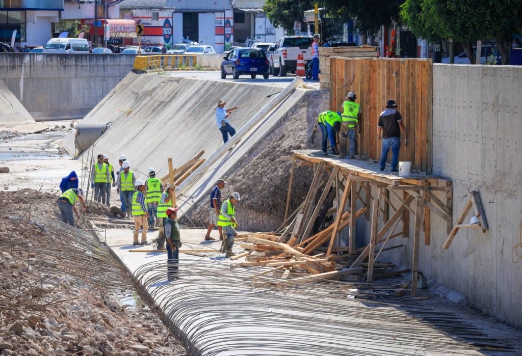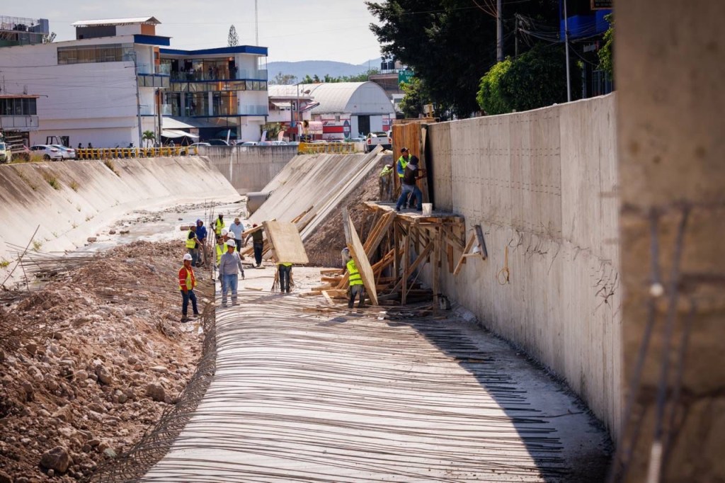 El proyecto integral contempla la atención de ocho puntos, entre colapsos, socavones y daños estructurales a los taludes y losas de fondo. En estos puntos se están construyendo muros y losas de concreto armado para reforzar la estructura del encauzamiento y garantizar su durabilidad.