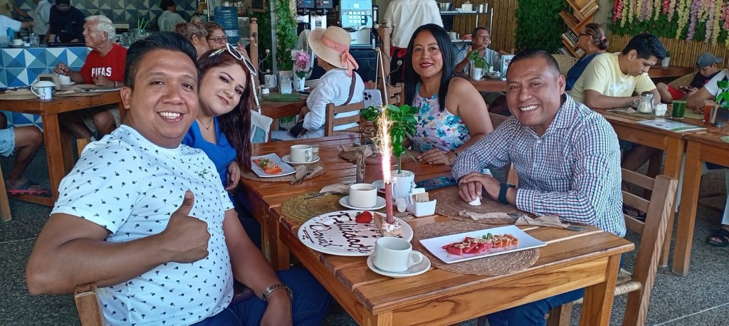 El evento inició con una sorpresa preparada por el personal del restaurante: un pastel adornado con una vela, acompañado de “Las Mañanitas”, que llenó el lugar de sonrisas y aplausos.