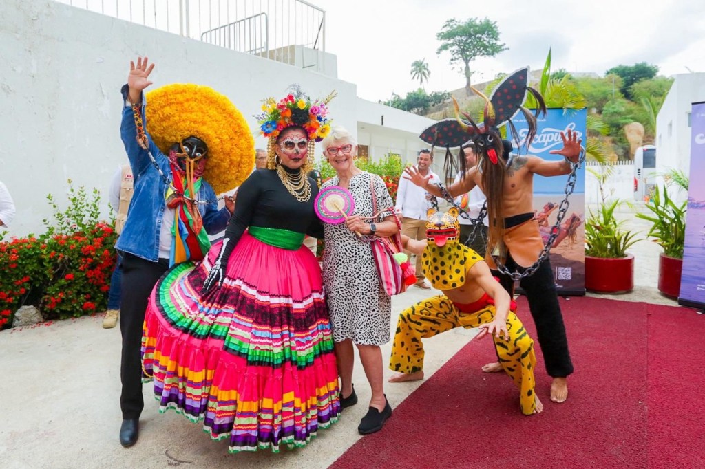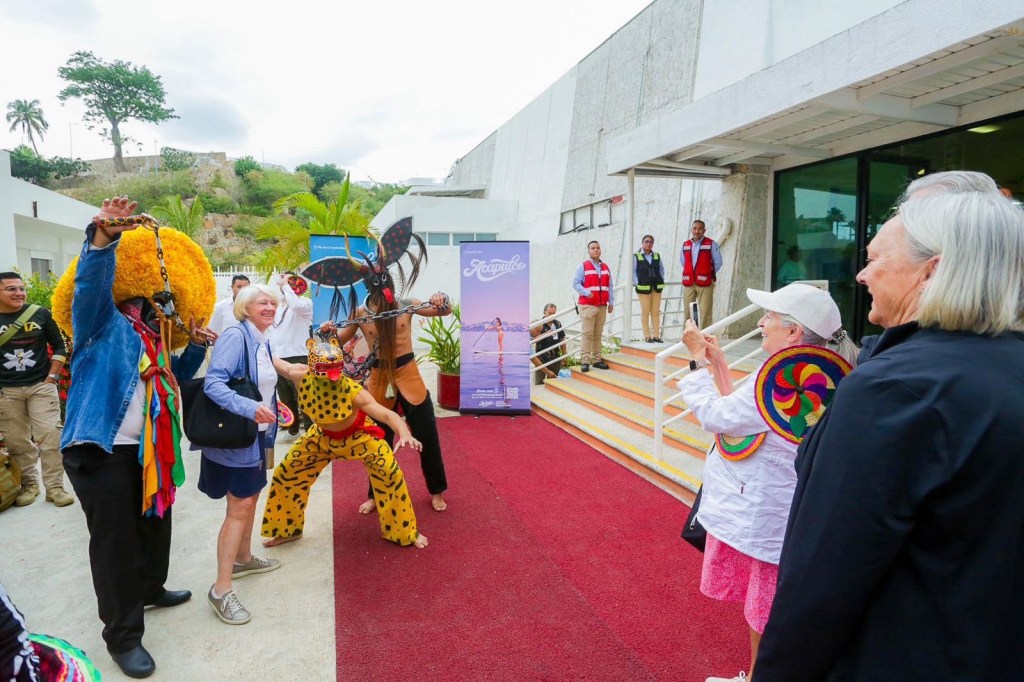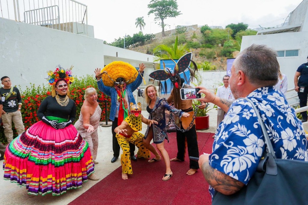 En el descenso al puerto los visitantes fueron recibidos con personajes típicos del estado de Guerrero y en el Fuerte de San Diego un Fandango Mezcalero, producto turístico que ganó el premio en FITUR este año, todo organizado por la Secretaría de Turismo Estatal.