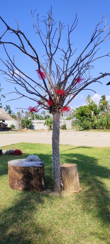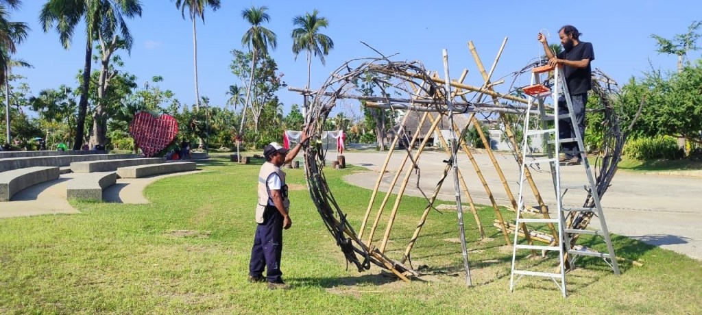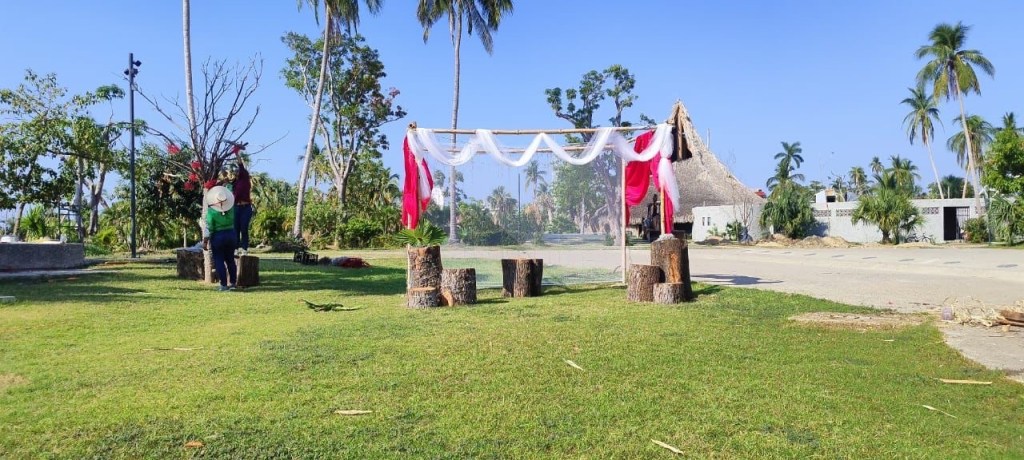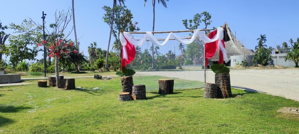 La decoración de las bodas de chocolate se realiza con material reciclado como hojas, ramas y troncos secos, que el equipo operativo y administrativo organizó para este importante evento en el que habrá sana diversión y sorpresas para quienes asistan.