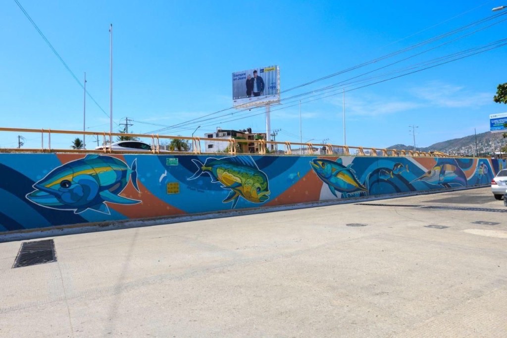 Explicó que en esta obra, plasmó un diseño decorativo y una serie de peces, en donde se representa a Acapulco y su vida marina. Además de este espacio, Miguel Ángel Vega también ha compartido su obra en el túnel de Sinfonía del Mar, el Parque de la Iguana y el Barrio de las Crucitas, con diseños que van desde el universo marino y la importancia de cuidar el medio ambiente, hasta las tradiciones de Guerrero y las raíces mexicanas.