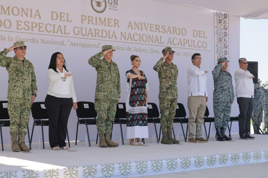 Acapulco, Gro., 06 de marzo de 2025.- “Desde el Estado, no sólo reconocemos el invaluable trabajo de la Guardia Nacional, sino que nos sumamos con determinación, a través de la estrategia conjunta, que todos los días impulsamos en la Mesa para la Construcción de la Paz, con acciones contundentes, por las familias de Guerrero”, expresó la gobernadora Evelyn Salgado Pineda durante su participación en la Ceremonia del Primer Aniversario del Mando Especial de la Guardia Nacional en Acapulco.