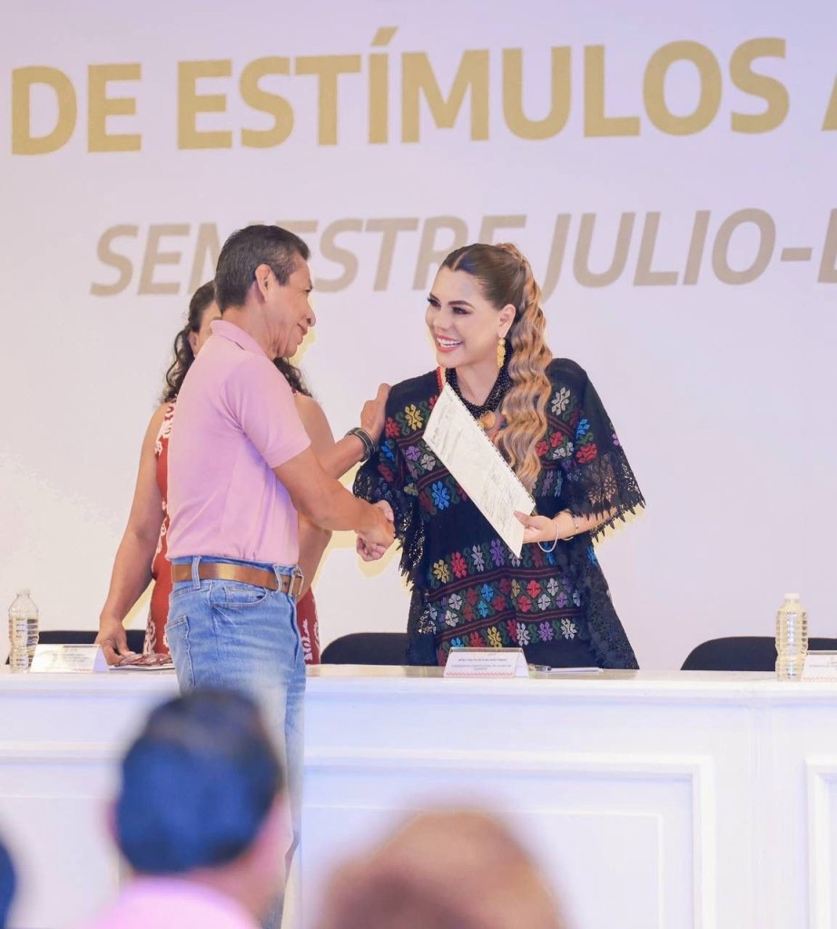 A nombre de los beneficiarios, María Elvis Suárez Chávez, directora de la escuela secundaria Pablo Mena Medina, agradeció a la gobernadora la entrega de este estímulo y reconoció el apoyo, cariño, respeto, ejemplo y compromiso que han recibido por parte de la mandataria estatal.