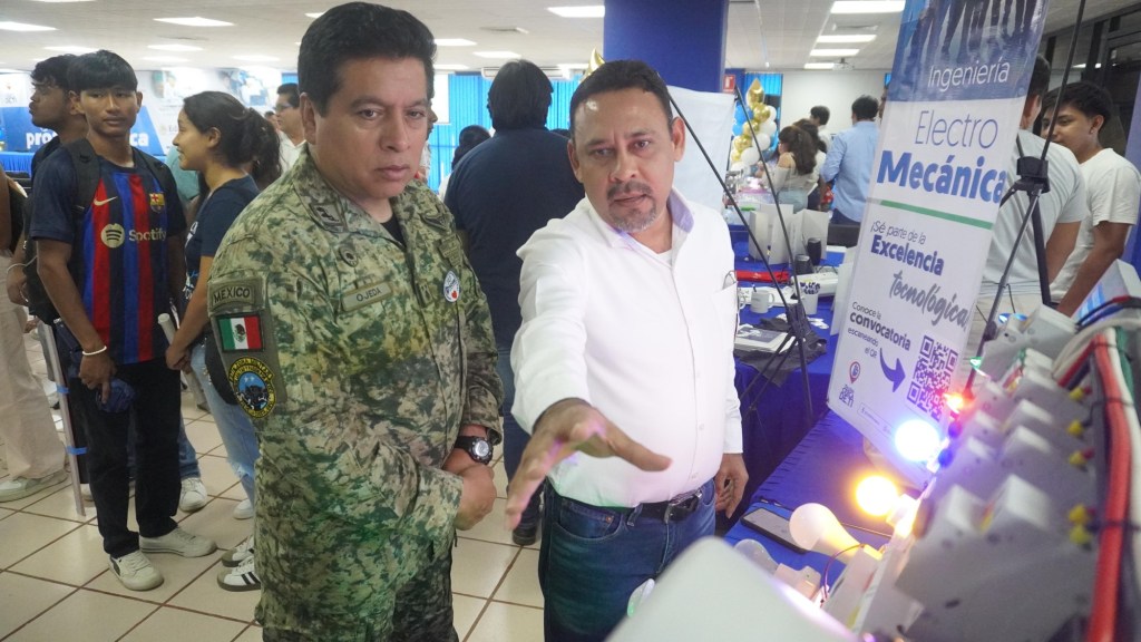 Como parte de su visita, el comandante Andrés Ojeda Ramírez realizó un recorrido por los stands de la Expoprofesiográfica 2025, donde tuvo la oportunidad de conversar con estudiantes y conocer los proyectos desarrollados en los 10 programas de estudio que ofrece la institución.