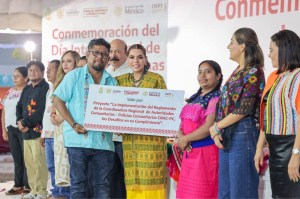 La gobernadora agradeció el respaldo del Instituto Nacional de los Pueblos Indígenas (INPI), con quien se firmó un convenio de colaboración para fortalecer los proyectos, el reconocimiento y los derechos de los pueblos originarios.
