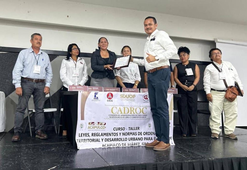 Acapulco, Gro., 15 de agosto de 2025.- Con la participación de colegios de profesionistas y autoridades municipales, este viernes concluyó el curso-taller “Leyes, Reglamentos y Normas del Ordenamiento Territorial y Desarrollo Urbano de Acapulco”, dirigido a integrantes de la Comisión de Admisión de Directores Responsables de Obra y Corresponsables (CADROC) y a la ciudadanía interesada en el tema.