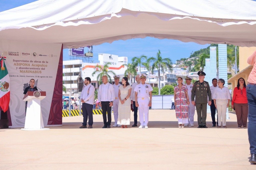 Acapulco, Gro., 23 de agosto de 2025.- Con una visión integral para el fortalecimiento de Acapulco, a través de la implementación de un transporte marítimo sustentable, seguro e innovador, la gobernadora Evelyn Salgado Pineda, acompañó a la presidenta de México, Claudia Sheinbaum Pardo en la ceremonia de abanderamiento del Marinabús.