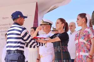 Como parte de la ceremonia protocolaria, Claudia Sheinbaum Pardo hizo entrega de la Bandera Nacional al comandante del buque Marinabús Acapulco I, Alan Ricardo Moreno Ávila y se realizó el izamiento correspondiente. También se llevó a cabo la lectura del Acuerdo Secretarial 417, en el que se indica el alta de esta embarcación en la Secretaría de Marina.