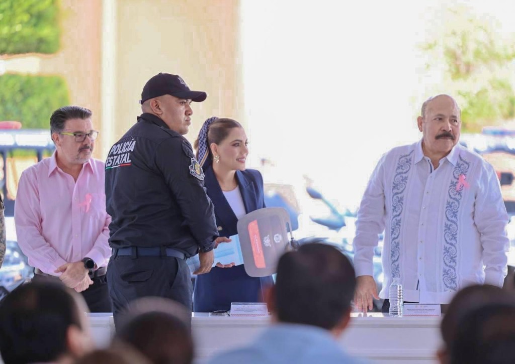 La gobernadora entregó un total de 72 unidades: 56 patrullas y 16 motopratrullas que se integrarán de inmediato a las operaciones de la Policía Estatal, reforzando la vigilancia en las ocho regiones.