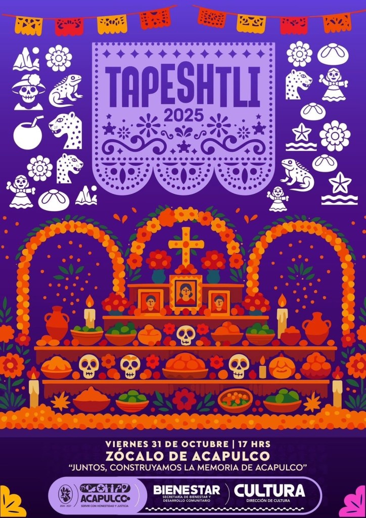 Acapulco, Gro., 27 de octubre de 2025.- El Gobierno Municipal que preside Abelina López Rodríguez, a través de la Secretaría de Bienestar y Desarrollo Comunitario, prepara el “Festival Tapeshtli 2025” los días 31 de octubre, 1 y 2 de noviembre como parte de las celebraciones del Día de Muertos, para fortalecer la identidad cultural e impulsar las tradiciones locales.