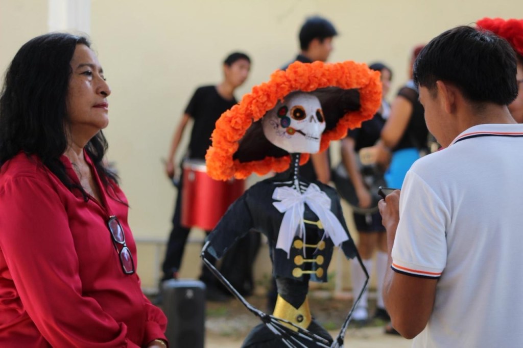 La presidenta también formó parte del jurado del concurso de catrinas y catrines, donde reconoció el talento, la creatividad y el compromiso del alumnado al entregar incentivos a quienes destacaron por su participación.