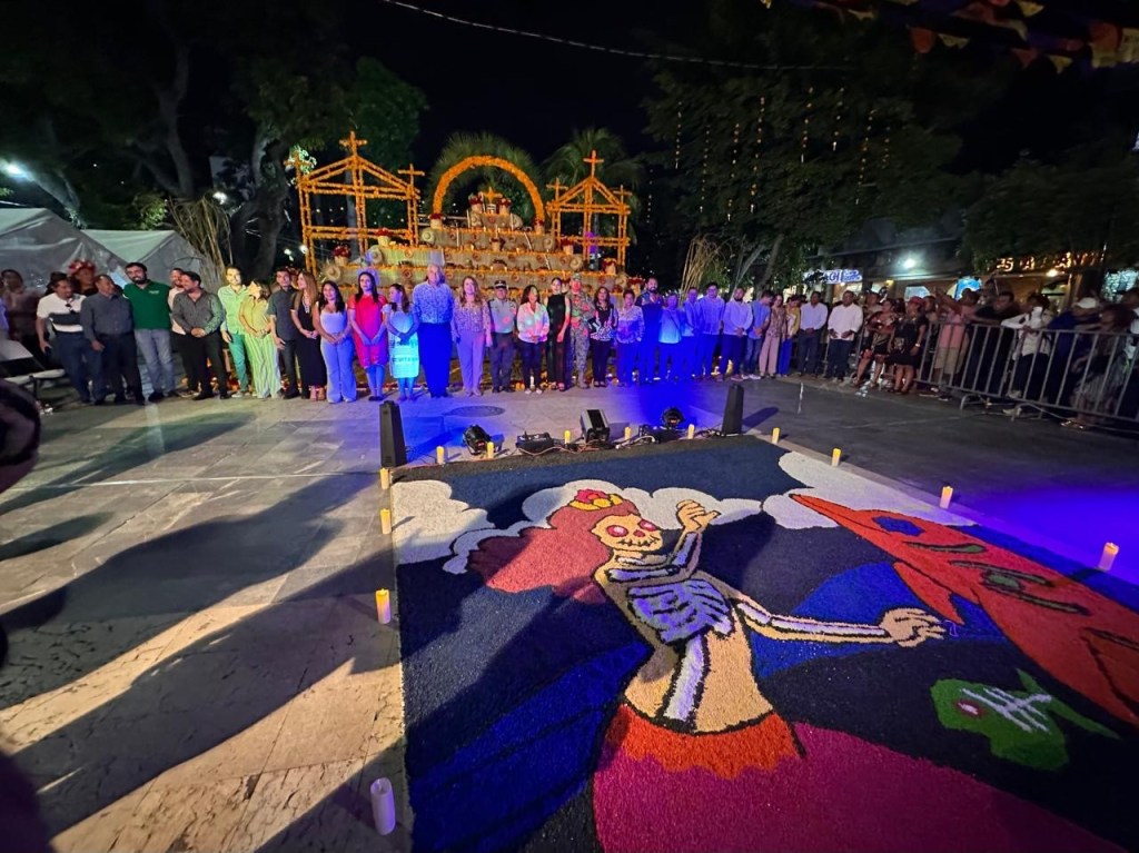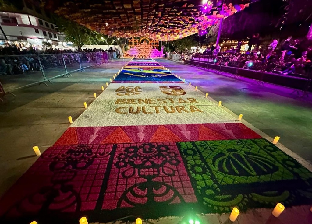 El tapete monumental, creación del artista David de León, complementó la experiencia del público, que compartió en comunidad pan de muerto, chocolate y tamales. La jornada reafirmó que el Día de Muertos en Acapulco es una celebración viva, luminosa y profundamente humana.