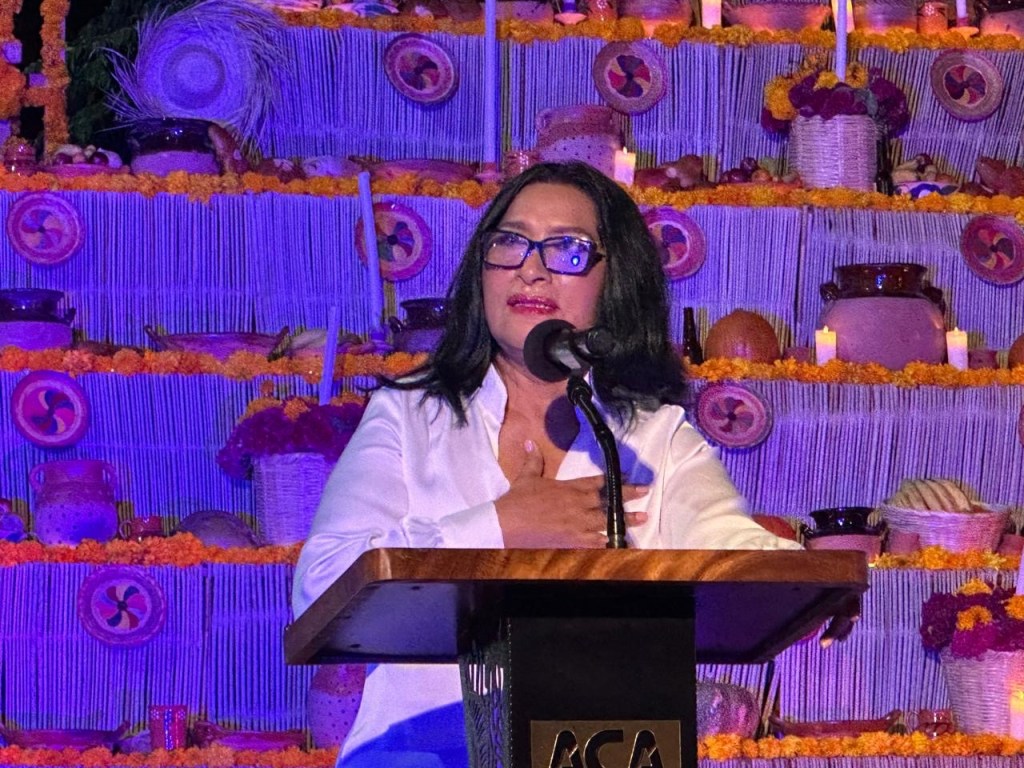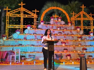 “A lo largo de los siglos esta tradición se ha transformado, pero nunca ha desaparecido. El Tapeshtli Acapulco no solo honra a quienes partieron, sino que celebra la fuerza de un pueblo que mantiene viva su cultura. Que esta luz, estas flores y este altar sean símbolo de unidad, esperanza y amor, porque en Acapulco nuestros seres queridos nunca se van: viven en nuestros corazones, en nuestras almas y en la historia que seguimos construyendo”, expresó.