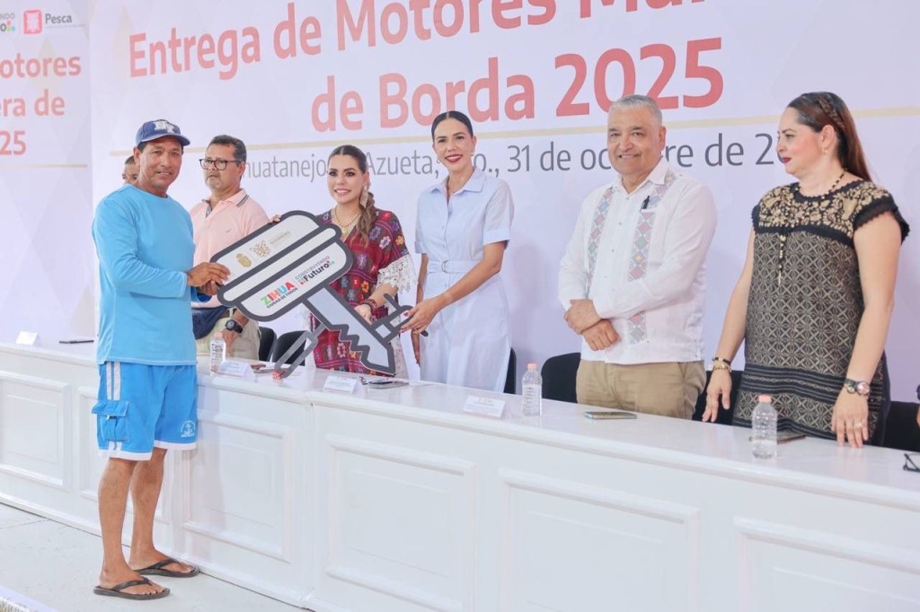 Ixtapa-Zihuatanejo, Gro., 31 de octubre de 2025.- Al participar en la entrega de motores marinos fuera de borda a integrantes de diversas asociaciones pesqueras de Zihuatanejo, la gobernadora Evelyn Salgado Pineda se pronunció a favor de seguir impulsando un trabajo en conjunto para lograr la consolidación de proyectos y obras relevantes en beneficio de la población. Ante colonos, pescadores y prestadores de servicios turísticos, la mandataria estatal dijo que este evento representa el espíritu de coordinación, diálogo y resultados compartidos con el que se trabaja en Guerrero.