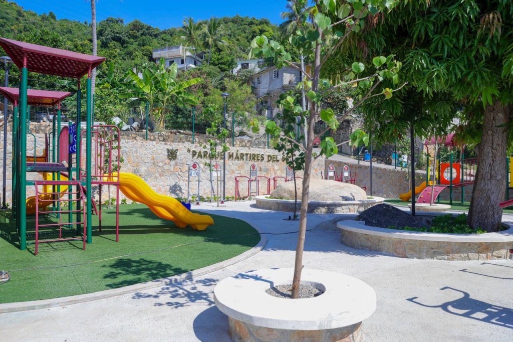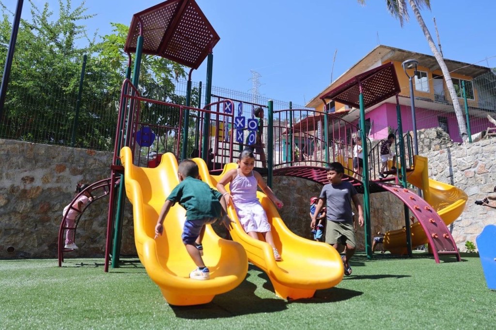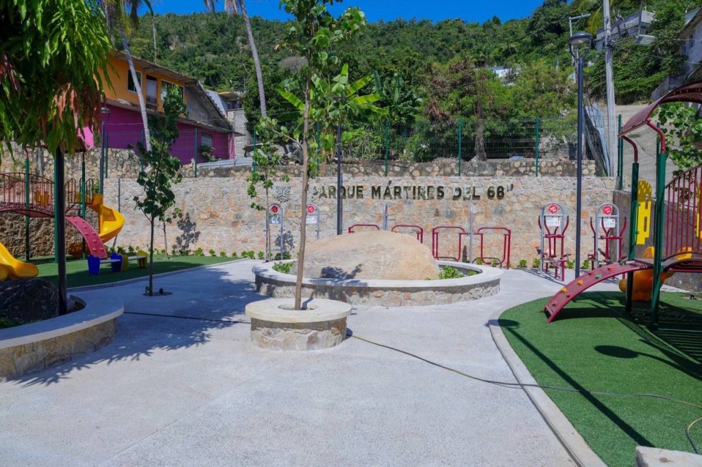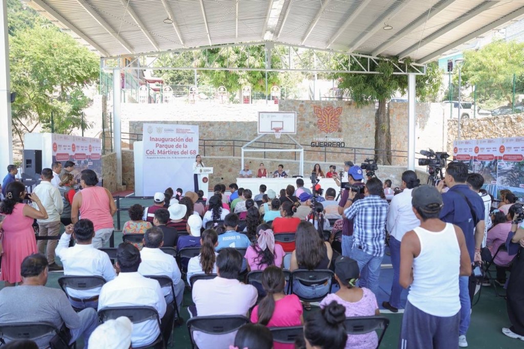 Acapulco, Gro., 14 de noviembre de 2025.- Refrendando su compromiso para seguir llevando obras que mejoren la vida de los habitantes de Acapulco, la gobernadora Evelyn Salgado Pineda, inauguró las instalaciones del parque de la colonia Mártires del 68, en donde se destinó una inversión de poco más de 7 millones de pesos para la construcción de la cancha, las áreas comunes, alumbrado, aparatos de ejercicio, juegos infantiles, entre otros beneficios. Se trata de un esfuerzo enfocado en el bienestar de las familias que habitan en ese centro poblacional de la parte alta del puerto, generando más y mejores opciones para la activación y promoción del deporte.