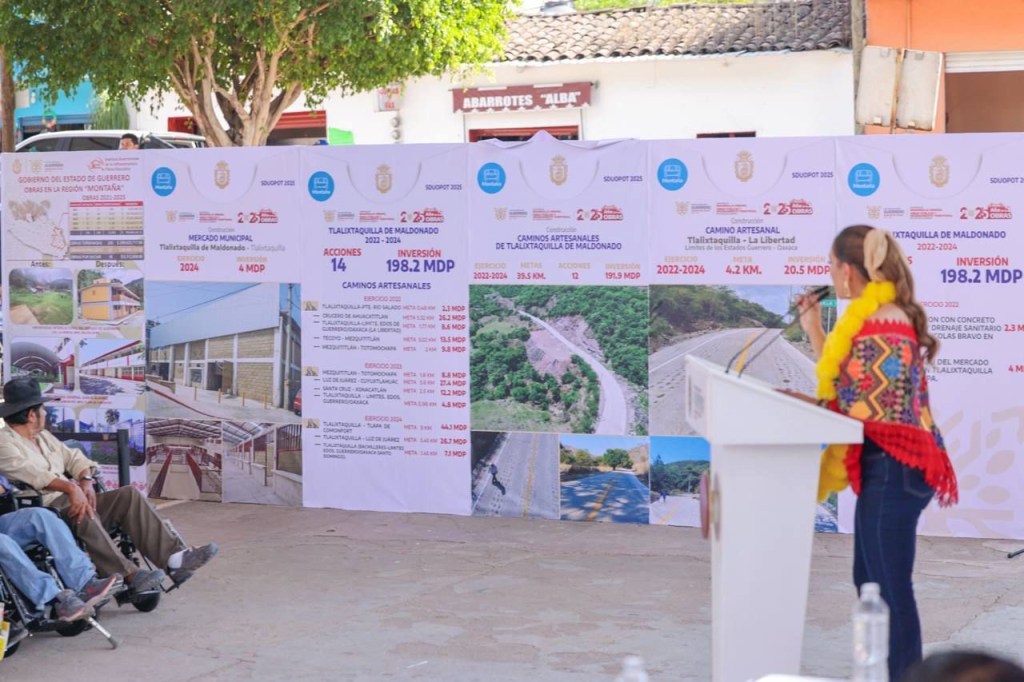 La mandataria destacó que el programa de Caminos Artesanales continuará en La Montaña con el apoyo de la presidenta Claudia Sheinbaum Pardo, especialmente en Tlalixtlaquilla, donde en los últimos tres años se han invertido más de 190 millones de pesos en 12 acciones, lo que ha permitido intervenir casi 40 kilómetros de pavimentación con mano de obra local, mejorando la conectividad de las comunidades.