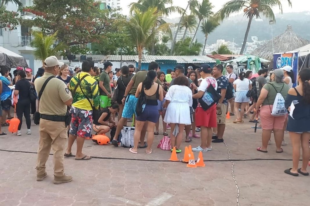 Acapulco, Gro., 28 de febrero de 2026.- La Secretaría de Seguridad Pública Municipal (SSP) desplegó un dispositivo especial en la franja turística con motivo del OPEN SWIM 2026, Selectivo al Campeonato Nacional de Aguas Abiertas, competencia que reúne a cerca de 250 nadadores en la bahía del puerto.