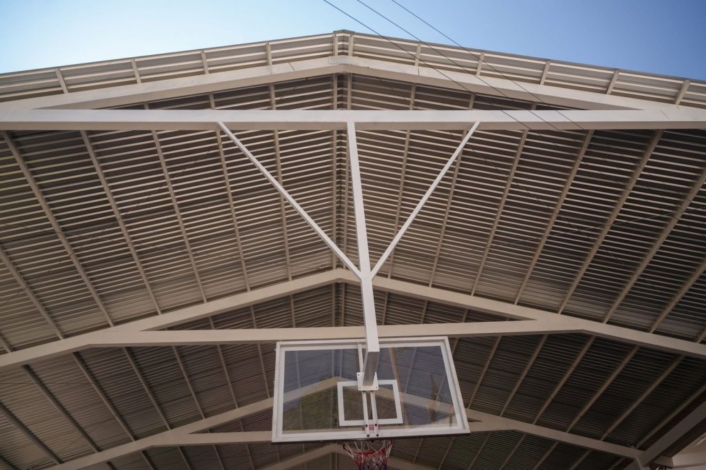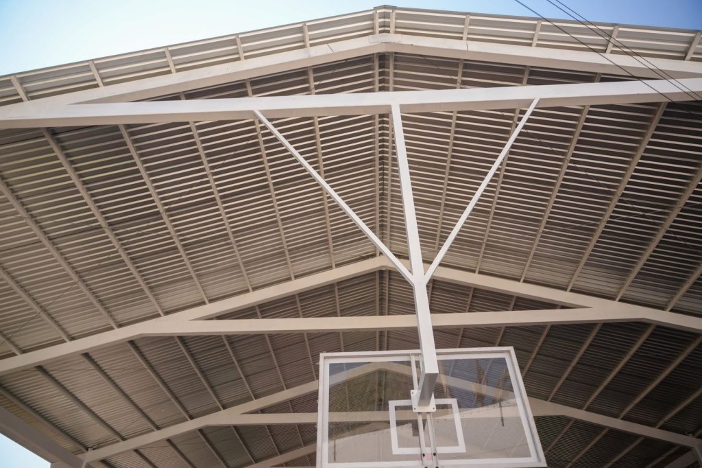El director de Obras Públicas, Vladimir Hernández Alemán, precisó que el techado cubre 600 metros cuadrados e incluyó zapatas aisladas de 1.50×1.50×0.30 m, dados de cimentación de 0.60×0.60 m en 12 piezas, columnas de PTR de 12×6 pulgadas calibre 3/16, trabes de carga, lámina galvanizada, luminarias tipo reflector, piso de concreto premezclado con pintura acrílica antiderrapante, así como porterías y tableros de básquetbol, bajo estrictos estándares de calidad que garantizan la durabilidad de la estructura.