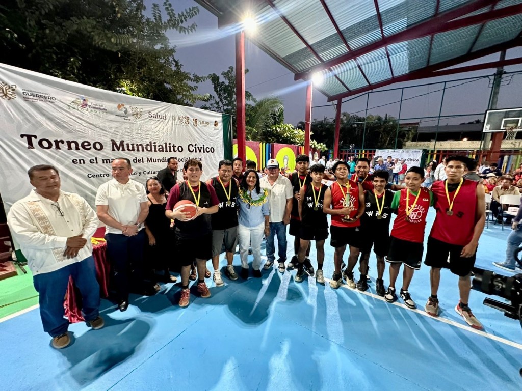 Acapulco, Gro., 09 de marzo de 2026.- Con el objetivo de fomentar respeto, trabajo en equipo y participación social entre la niñez, la presidenta Abelina López Rodríguez premió a los clubes ganadores del Torneo “Mundialito Cívico”, iniciativa que convierte los espacios públicos en lugares de desarrollo, aprendizaje y recreación.