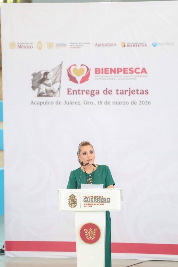 Acapulco, Gro., 18 de marzo de 2026.- «Para que el bienestar llegue a cada hogar de las ocho regiones, sigamos construyendo un Guerrero donde el trabajo siga siendo la semilla del desarrollo y donde nuestras comunidades sigan siendo el corazón de esta transformación», señaló la gobernadora Evelyn Salgado Pineda durante la entrega de apoyos del programa Bienpesca, en donde además, refrendó su respaldo hacia el sector pesquero y acuícola, con el compromiso de emprender acciones que le den certeza y seguridad para impulsar esta actividad y fortalecer su economía.