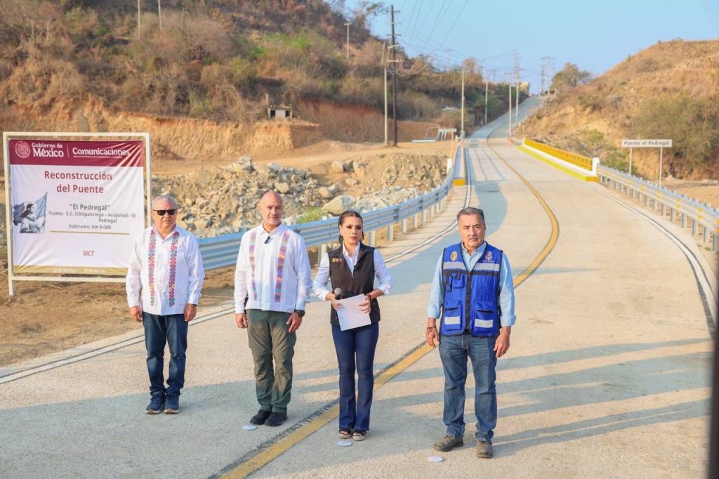 Junto al titular de la Secretaría de Infraestructura, Comunicaciones y Transportes de México, Jesús Antonio Esteva Medina, la jefa del Ejecutivo señaló que este es uno de los casi 70 puentes que el gobierno de México ha rehabilitado en Guerrero a través de la SICT, tras el paso del huracán John.