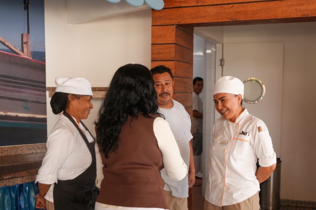 En el encuentro saludó al director general del hotel, Israel Aragón Andrade, al director de ventas de Royal Holiday, Emanuel Omaña y al personal operativo. Con ellos, reafirmó la relevancia del turismo como motor económico y la coordinación entre gobierno y prestadores de servicios para garantizar una experiencia de calidad.