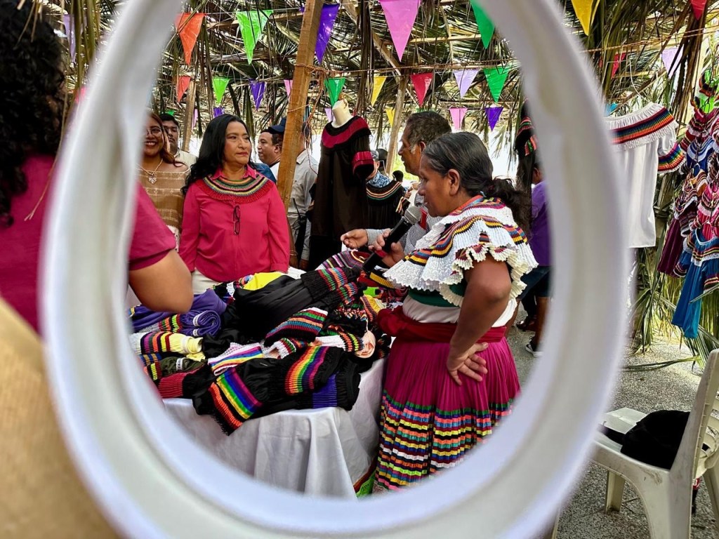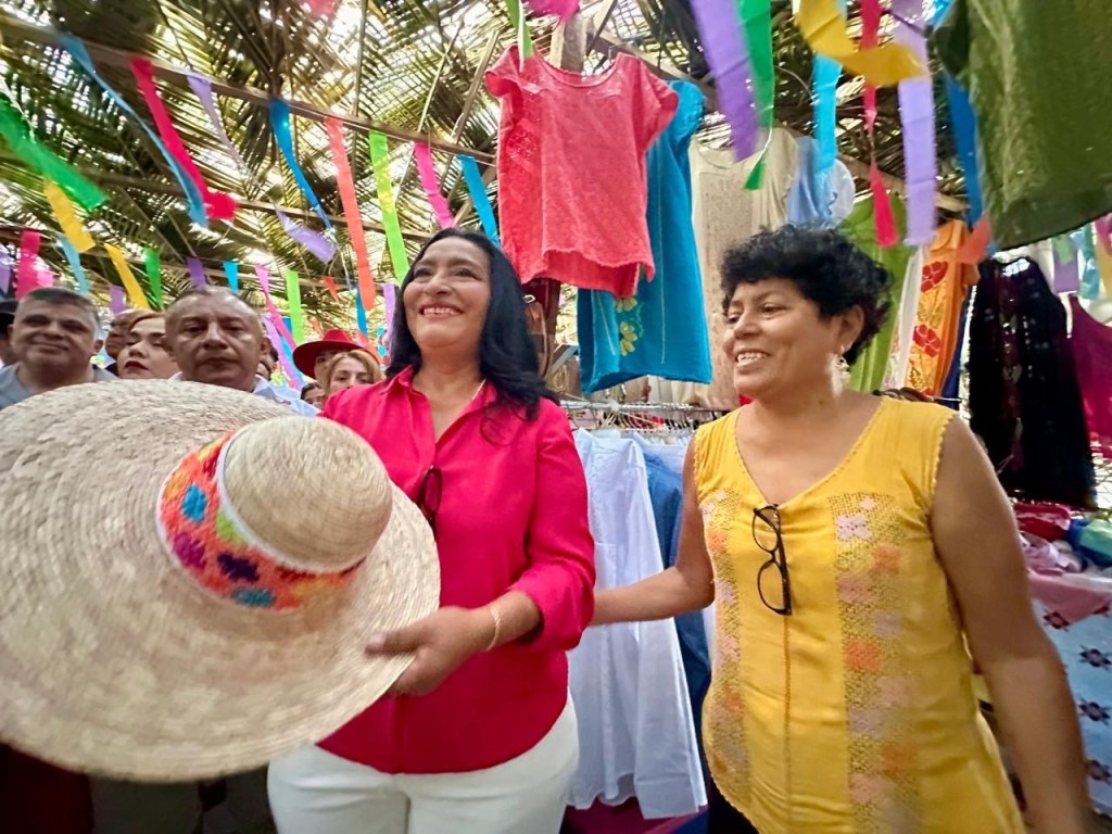 Antes del acto inaugural, acompañada por integrantes del Cabildo, invitados especiales y funcionarios municipales, Abelina López participó en el corte de listón del pabellón artesanal, cultural y gastronómico instalado en el recinto. En este espacio, artesanas y artesanos exhibieron piezas representativas de las siete regiones del estado, entre ellas cajas de Olinalá, mezcal, textiles, bisutería y artículos elaborados con técnicas tradicionales que forman parte del patrimonio cultural guerrerense.