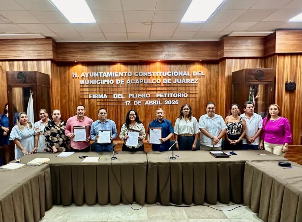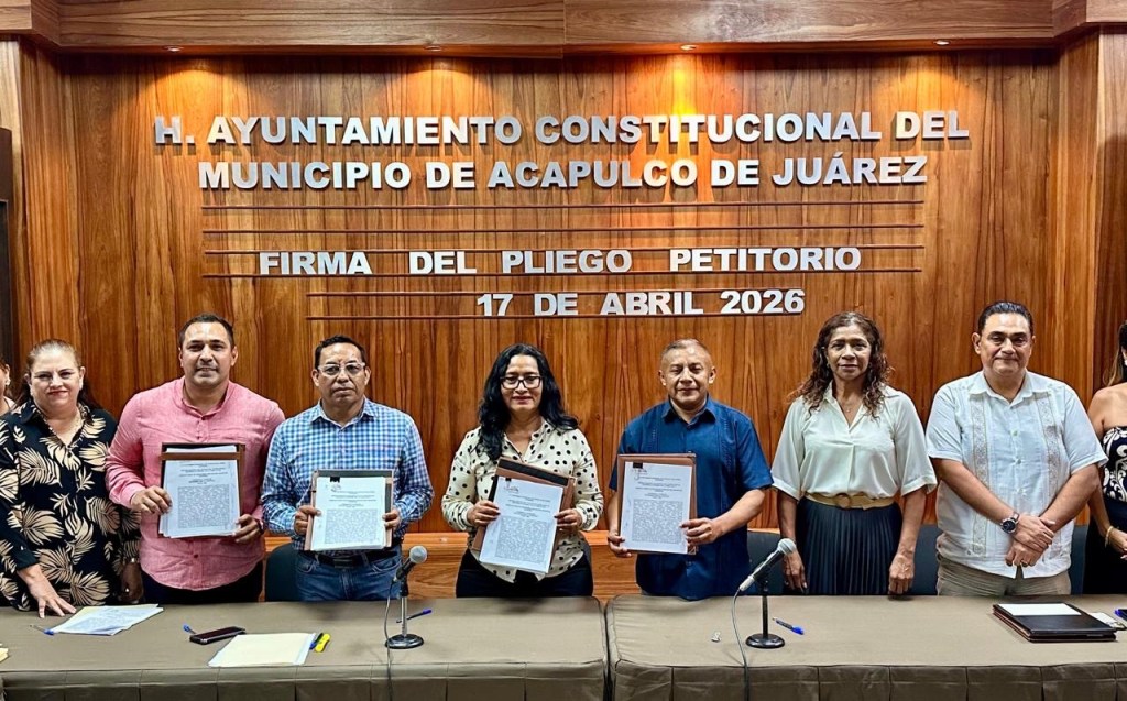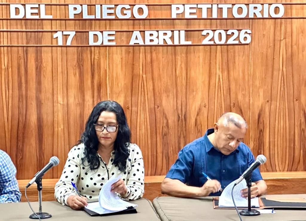 Acapulco, Gro., 17 de abril de 2026.- La presidenta municipal Abelina López Rodríguez firmó el pliego petitorio 2026 con el Sindicato Único de Servidores Públicos del Estado de Guerrero (SUSPEG), con lo que da continuidad a los acuerdos laborales con la base trabajadora y mantiene vigentes las condiciones que respaldan sus derechos y prestaciones.